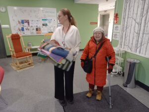 Kävimme maanantaina 8.12 Jarnan kanssa luovuttamassa Kimin käsityöryhmän valmistamat 5 täkkipeittoa (kiitos Marita viimeistelystä!!) Lehmuskartanon hoitokodille. Hoitokodin Leena Seppälä vastaanotti peittoja ja kertoi että vanhukset ilahtuu.